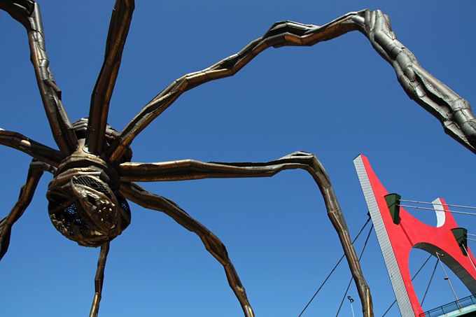 Pormenor da Mamá - Aranha Mãe, feita de bronze, aço e mármore, com mais de 10 metros de altura. Encontra-se junto ao Museu Guggenheim Bilbao e trata-se de uma homenagem à maternidade.